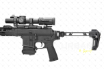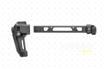 Al instalar la bisagra para plegar a la izquierda, los usuarios experimentarán una memoria muscular similar a la de quienes ya han usado nuestra Doble Carpeta; el proceso es el mismo para plegar. Simplemente levante el brazo y dóblelo a la izquierda. En posición plegada, el brazo se puede extender firmemente para un despliegue rápido sin riesgo de dañar la bisagra gracias a su nuevo diseño reforzado. En las posiciones de las 3 y las 9 en punto, hay dos puntos de desbloqueo rápido en el extremo de la culata para fijar su correa portafusil favorita. Dado que utiliza la edición de culata de nuestra Doble Carpeta, asegúrese de adquirir también nuestro Elevador de Mejillas FSA ajustable para una experiencia de tiro más cómoda.