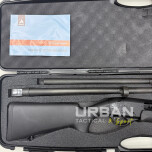 La escopeta Akkar Stopping Power Combo cuenta con dos cañones uno corto liso con guion metálico y el cañón largo viene con banda ventilada de 7mm con un choque extendido puesto, además cuenta con dos choques extendidos adicionales, llave para choques, maletín rígido y correa de transporte.