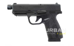 La Bersa BP9CC — Cal. 9×19 mm en acabado pavonado mate con caño roscado es la versión compacta de la plataforma BP9, pensada para portación y uso operativo, con acabados sobrios y posibilidad de acoplar silenciador/compensador en el caño roscado (según normativa local). Ofrece ergonomía cuidada y controles accesibles, con un perfil bajo y discreto ideal para porte oculto y empleo profesional.